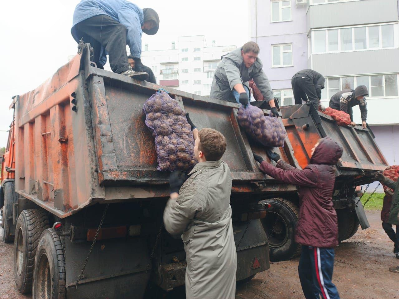 По многолетней традиции студены ГПОУ Осинниковского горно -технического колледжа помогают разгружать и доставлять овощные наборы до заявителя.